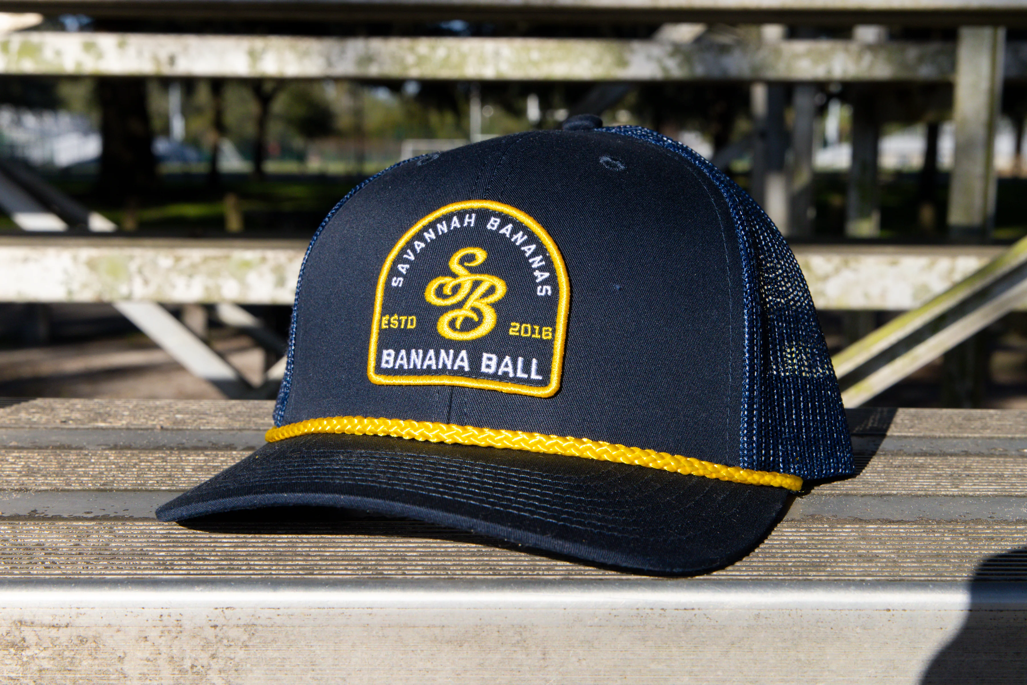 Bananas EvoShield Adjustable Trucker Patch Logo Hat with Yellow Rope- Navy